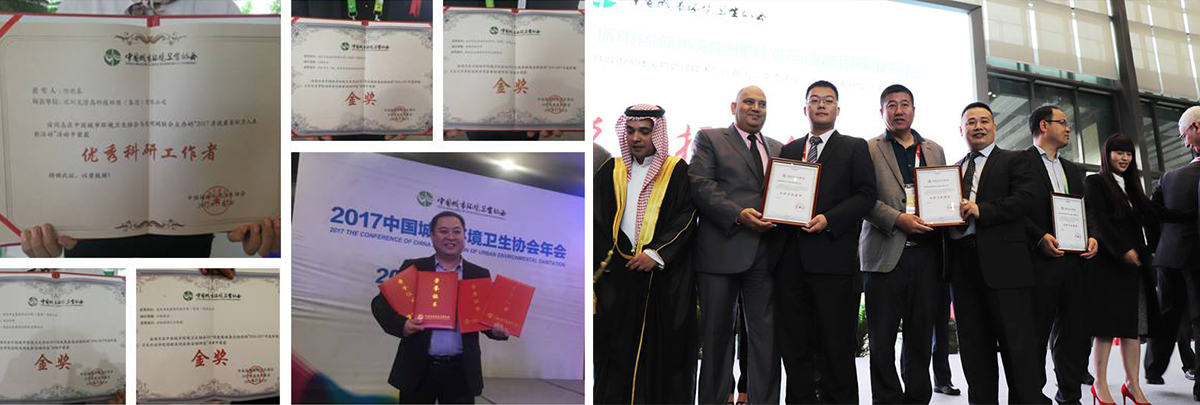 鉴于在环境卫生行业所取得的优秀成绩,龙澄集团在本次展会的“2016-2017年度环境卫生行业争优创新系列表彰活动”上被授予了“餐厨垃圾处理项目创新金奖”、“垃圾收运项目创新金奖”、“污泥处理项目创新金奖”、“特别贡献银奖”、“优秀科研工作者”等多项荣誉。