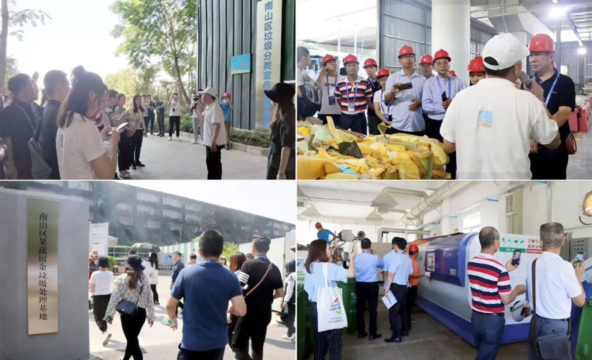在深圳市首个园林式、花园式一体化的垃圾分类环境生态园南山区垃圾分类环境生态园,各种分拣工作井然有序,年花年桔回植、废旧家具、玻金塑纸、果蔬垃圾、厨余垃圾、废旧电池及灯管共6种垃圾在此进行分类处理回收。在梅林一村垃圾分类示范点小区每栋楼主要出入口设有垃圾分类收集点,包括有害垃圾、可回收物(玻璃、金属、塑料和纸类)、厨余垃圾和其他垃圾四类分类。与会嘉宾通过听讲解、看现场、作交流,详细了解了生活垃圾分类回收工作的新型模式。