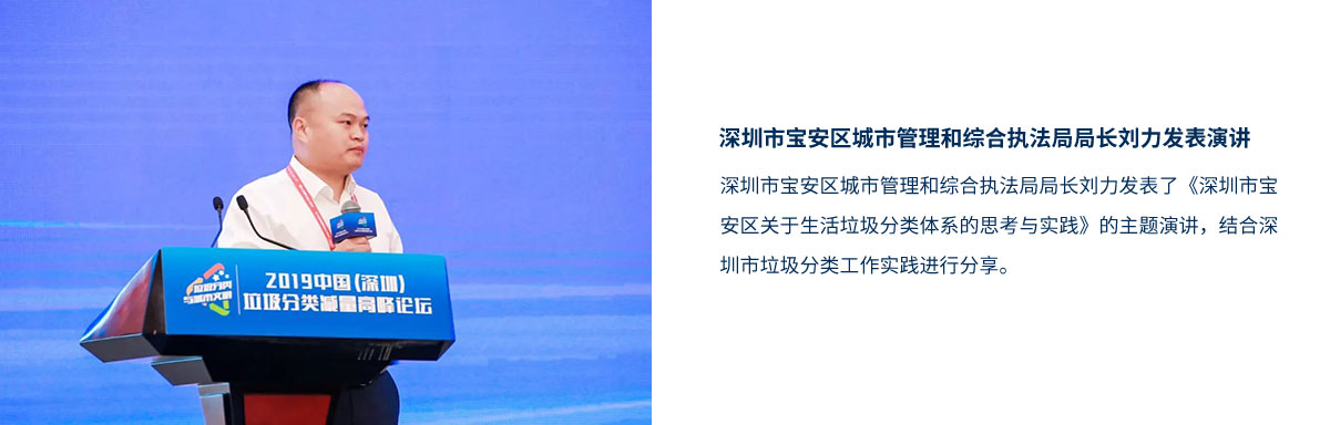2019年10月18日,由中国城市环境卫生协会等单位联合举办的“2019中国(深圳)垃圾分类减量高峰论坛”在深圳五洲宾馆召开。本次论坛以“垃圾分类与城市文明”为主题,进一步贯彻落实国家生活垃圾分类政策要求,业界专家、城市代表和企业家等齐聚一堂,共同交流垃圾分类专家观点和研究成果,探索、传播垃圾分类新思路和新模式,推动、助力垃圾分类与城市文明。