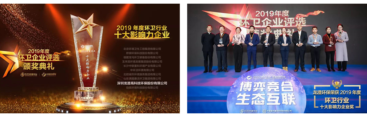 12月19至21日,由E20环境平台和中国城市建设研究院共同主办的第十三届固废战略论坛在北京举行,来自国家相关部委、地方政府等管理部门,专家学者、领跑企业、研究机构、行业媒体等嘉宾出席了此次论坛。论坛公布了备受关注的“2019年度环卫行业十大影响力企业”奖项的评选结果,龙澄环保荣登榜单。